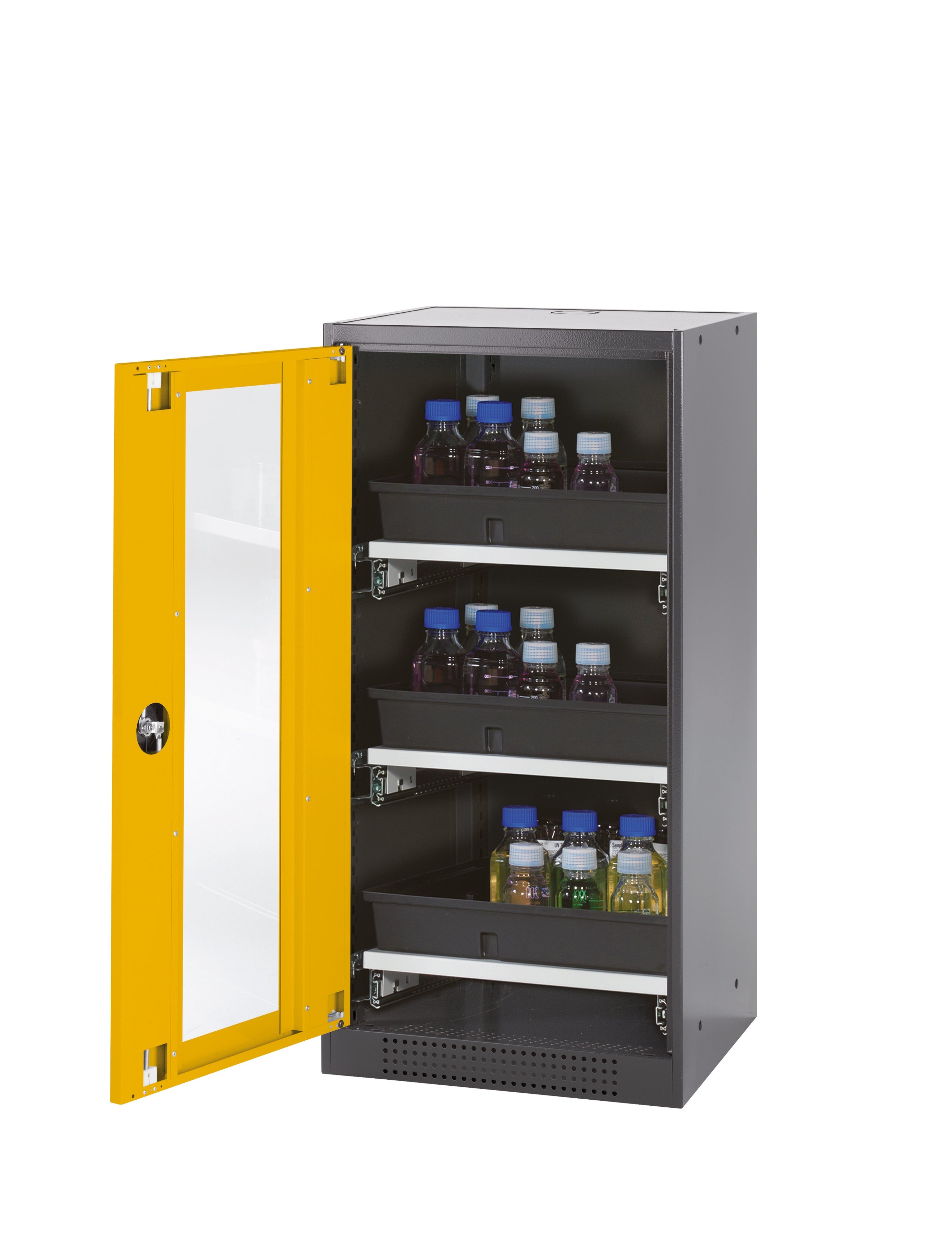 Chemikalienschrank CS-CLASSIC-G Modell CS.110.054.WDFW in sicherheitsgelb RAL 1004 mit 3x Tablarauszug AbZ (Stahlblech/Polypropylen)
