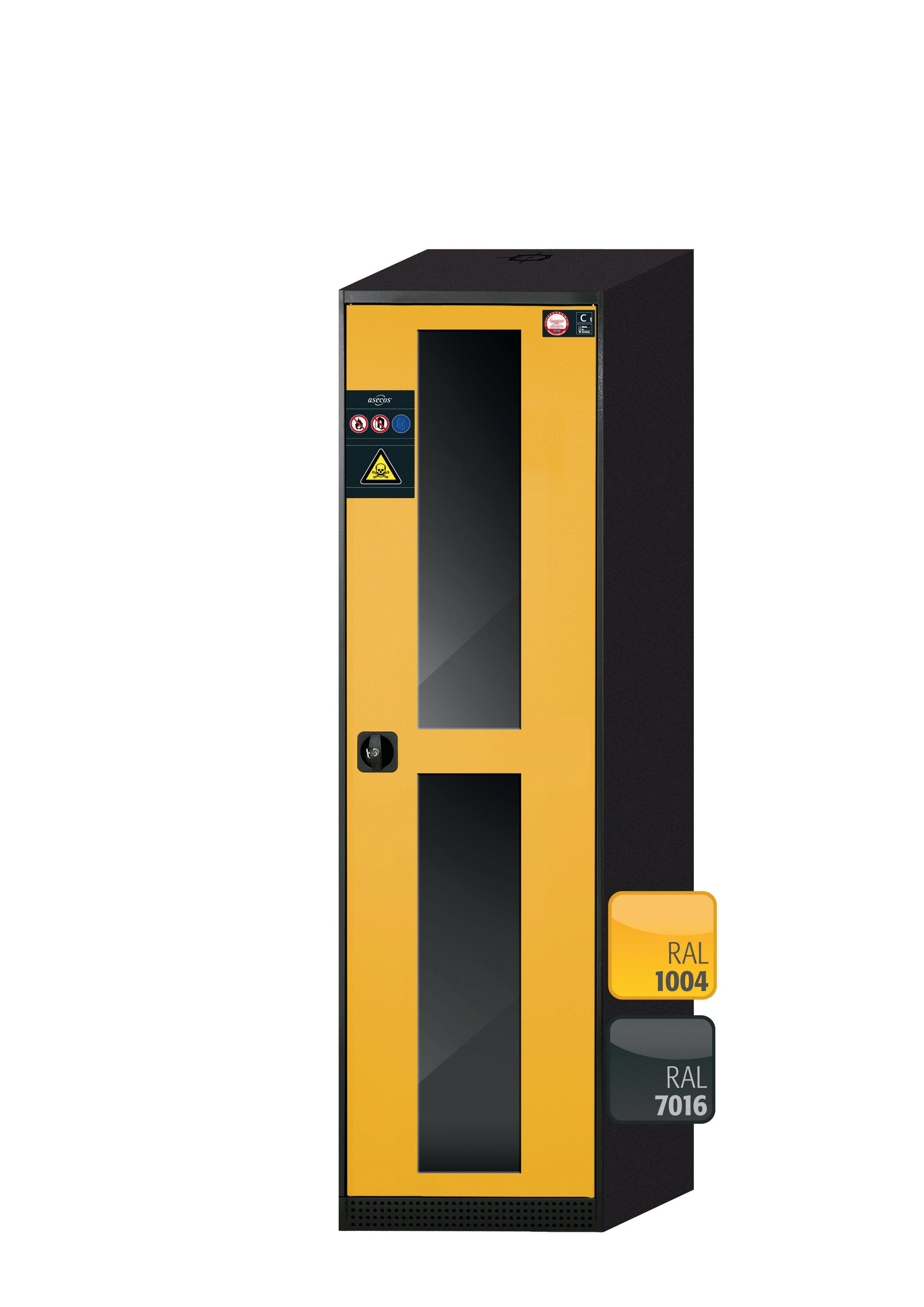 Chemikalienschrank CS-CLASSIC-G Modell CS.195.054.WDFWR in sicherheitsgelb RAL 1004 mit 4x Tablarauszug AbZ (Stahlblech/Polypropylen)