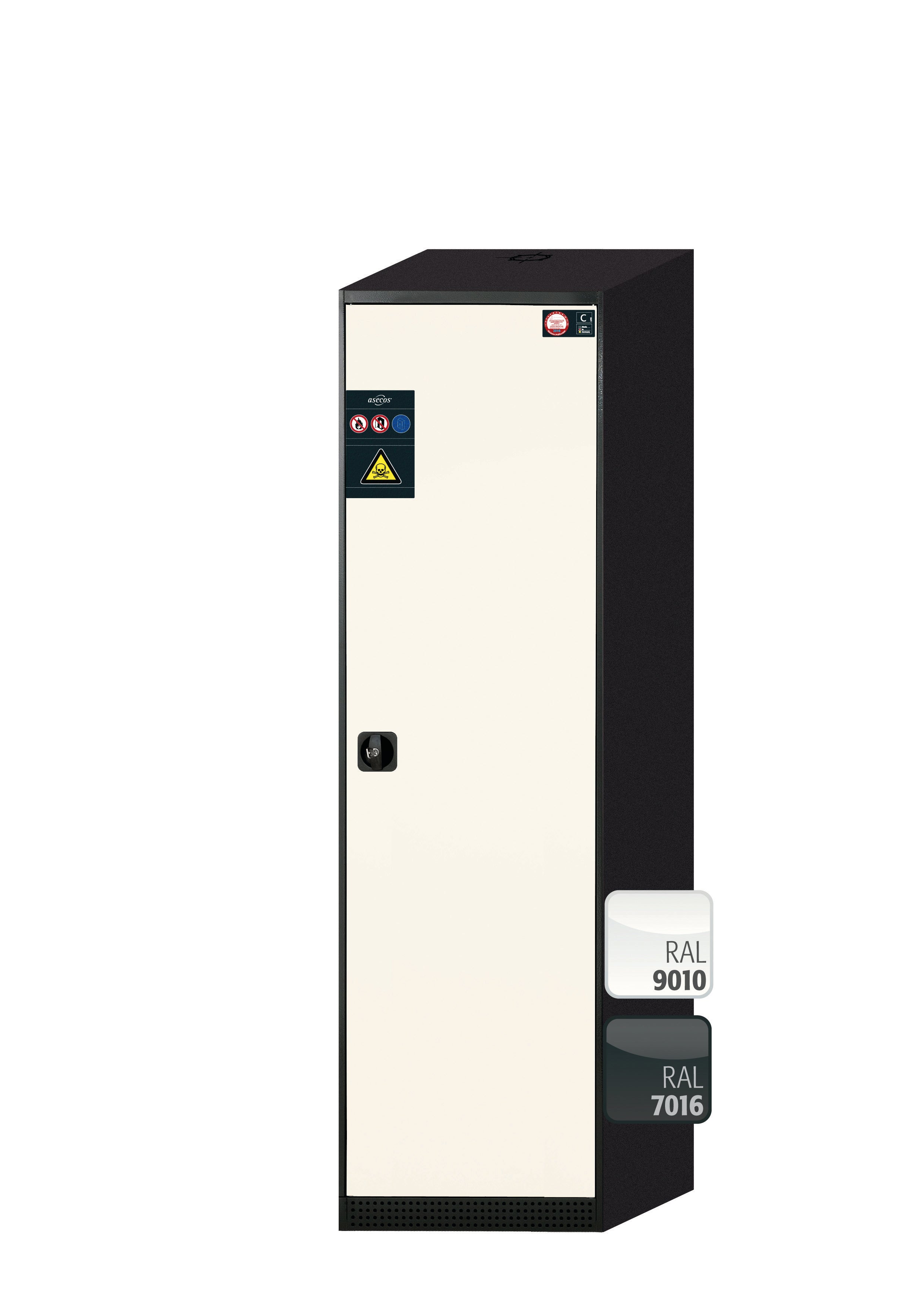 Chemikalienschrank CS-CLASSIC Modell CS.195.054.R in reinweiss RAL 9010 mit 3x Fachboden Standard (Stahlblech)