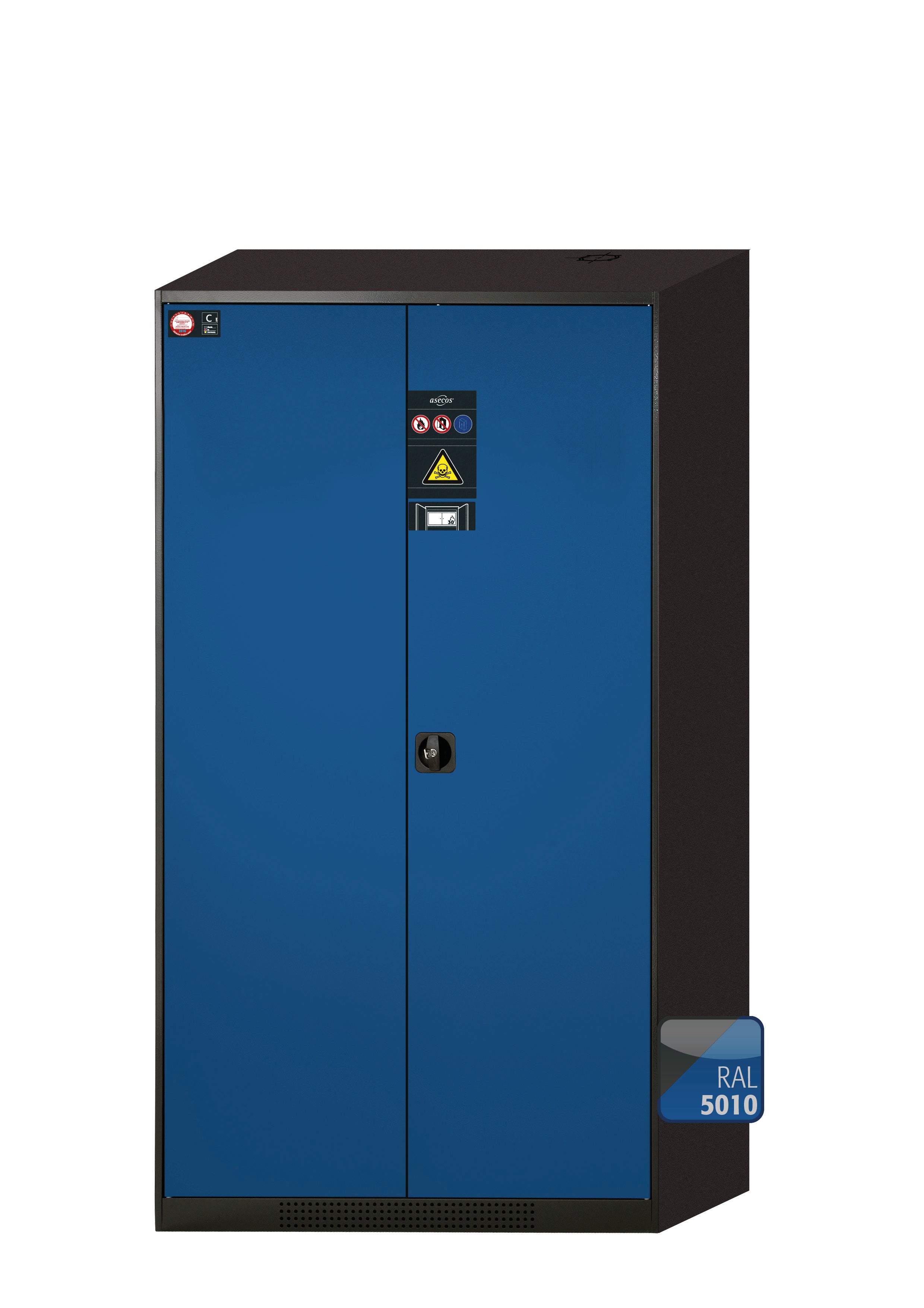 Chemikalienschrank mit Typ-30-Sicherheitsbox CS-CLASSIC-F Modell CS.195.105.F in enzianblau RAL 5010 mit 2x Fachboden Standard (Stahlblech)