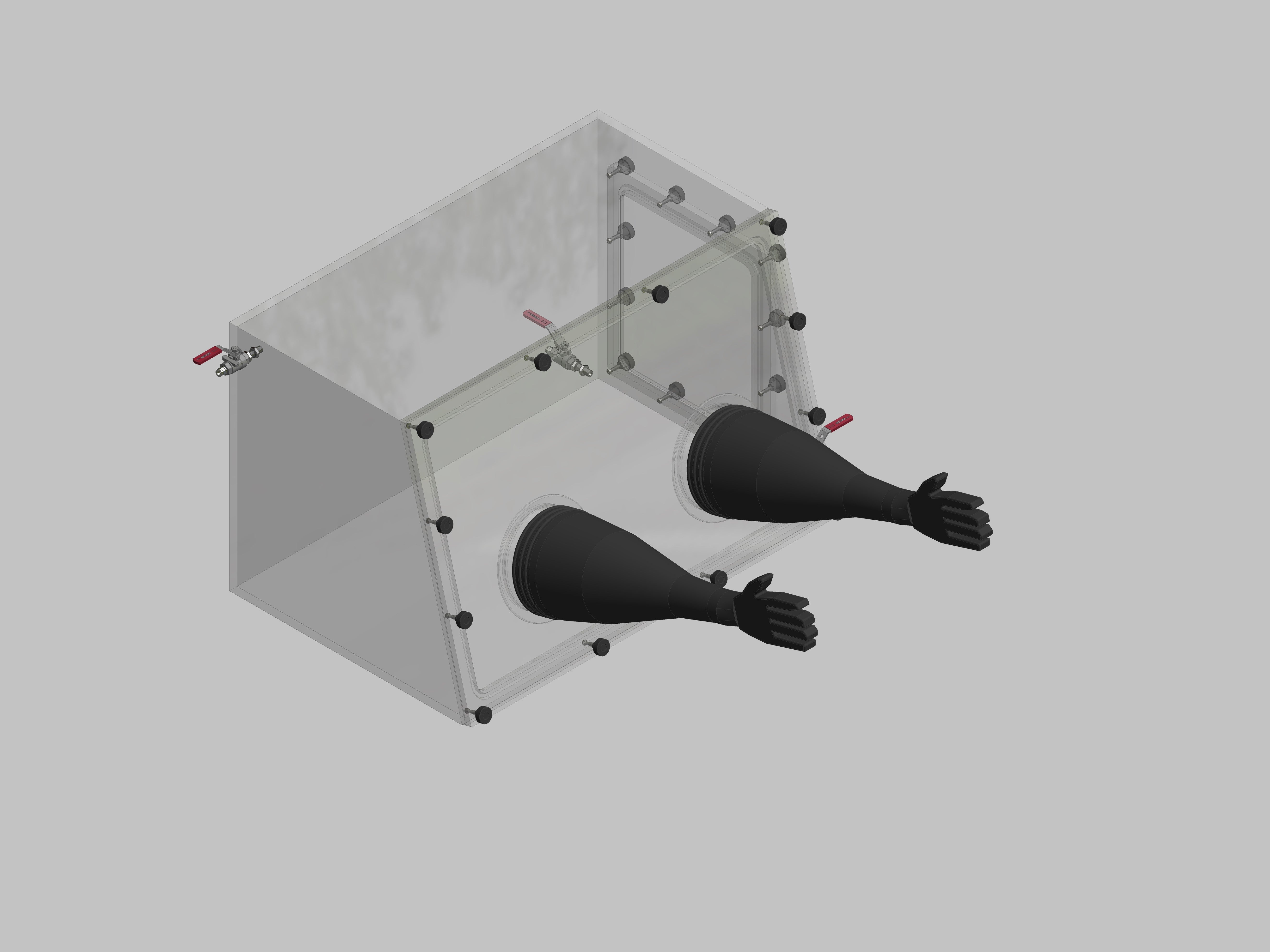 Glovebox aus Acryl> Gasbefüllung: Von Hand, Frontausführung: abnehmbar Seitenausführung: Flansch abnehmbar