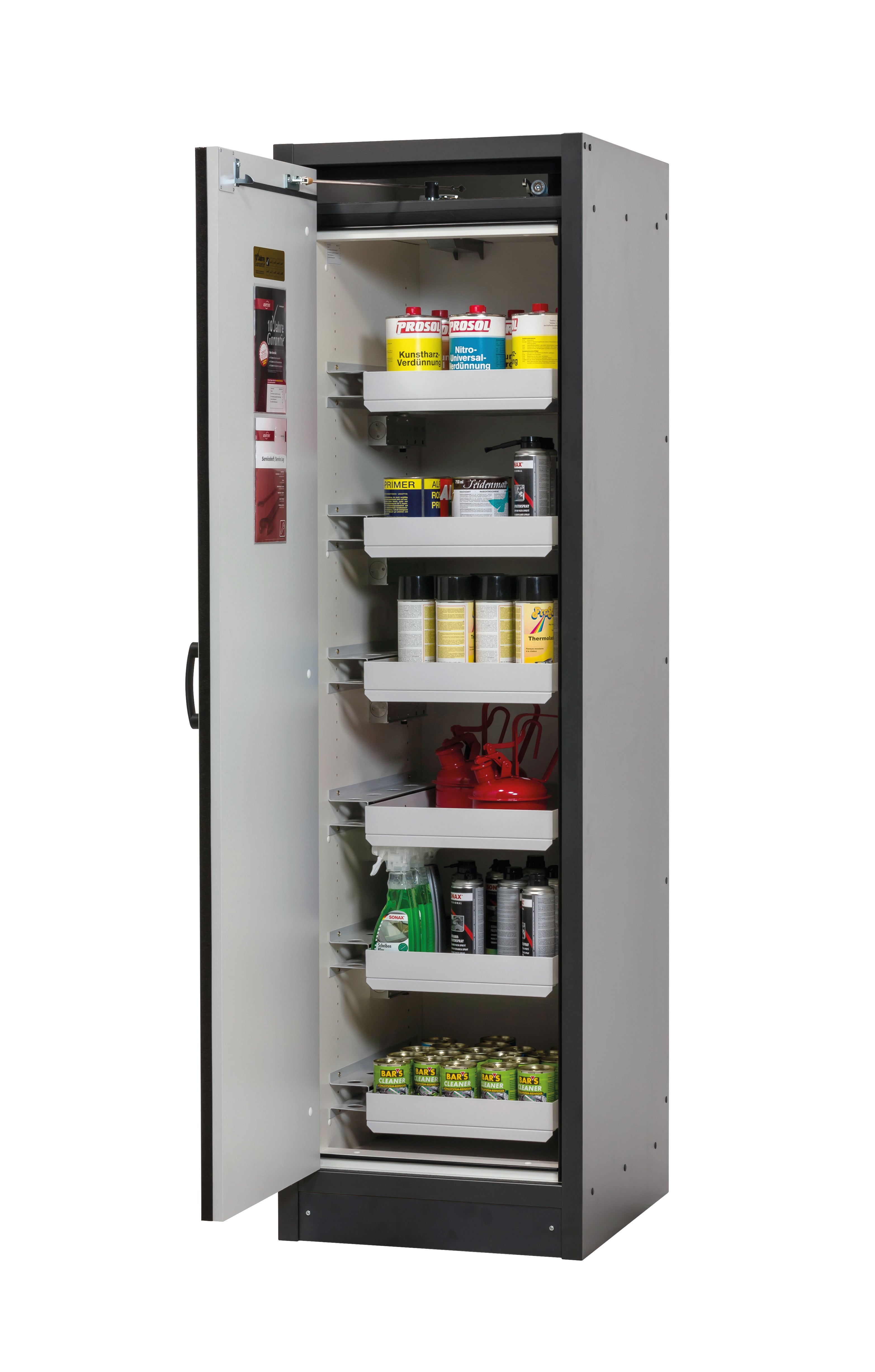 Typ 30 Sicherheitsschrank Q-CLASSIC-30 Modell Q30.195.056 in lichtgrau RAL 7035 mit 6x Auszugswanne Standard (Stahlblech)
