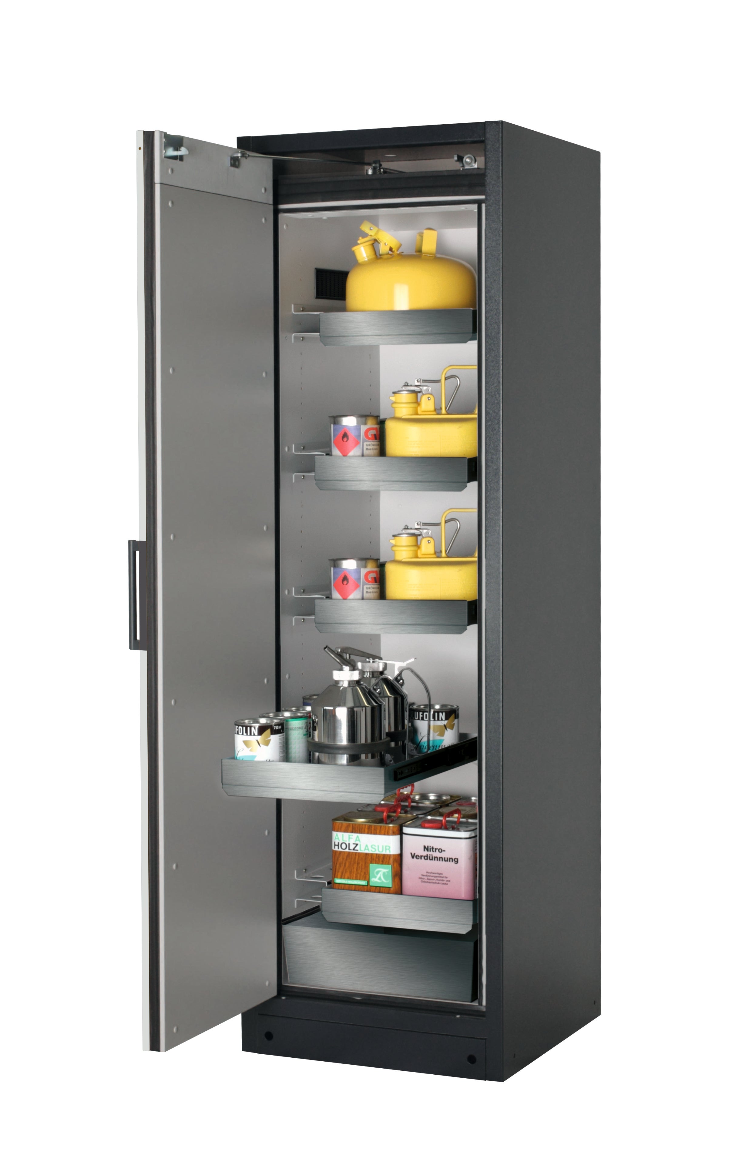 Typ 90 Sicherheitsschrank Q-CLASSIC-90 Modell Q90.195.060 in lichtgrau RAL 7035 mit 4x Auszugswanne Standard (Edelstahl 1.4301)