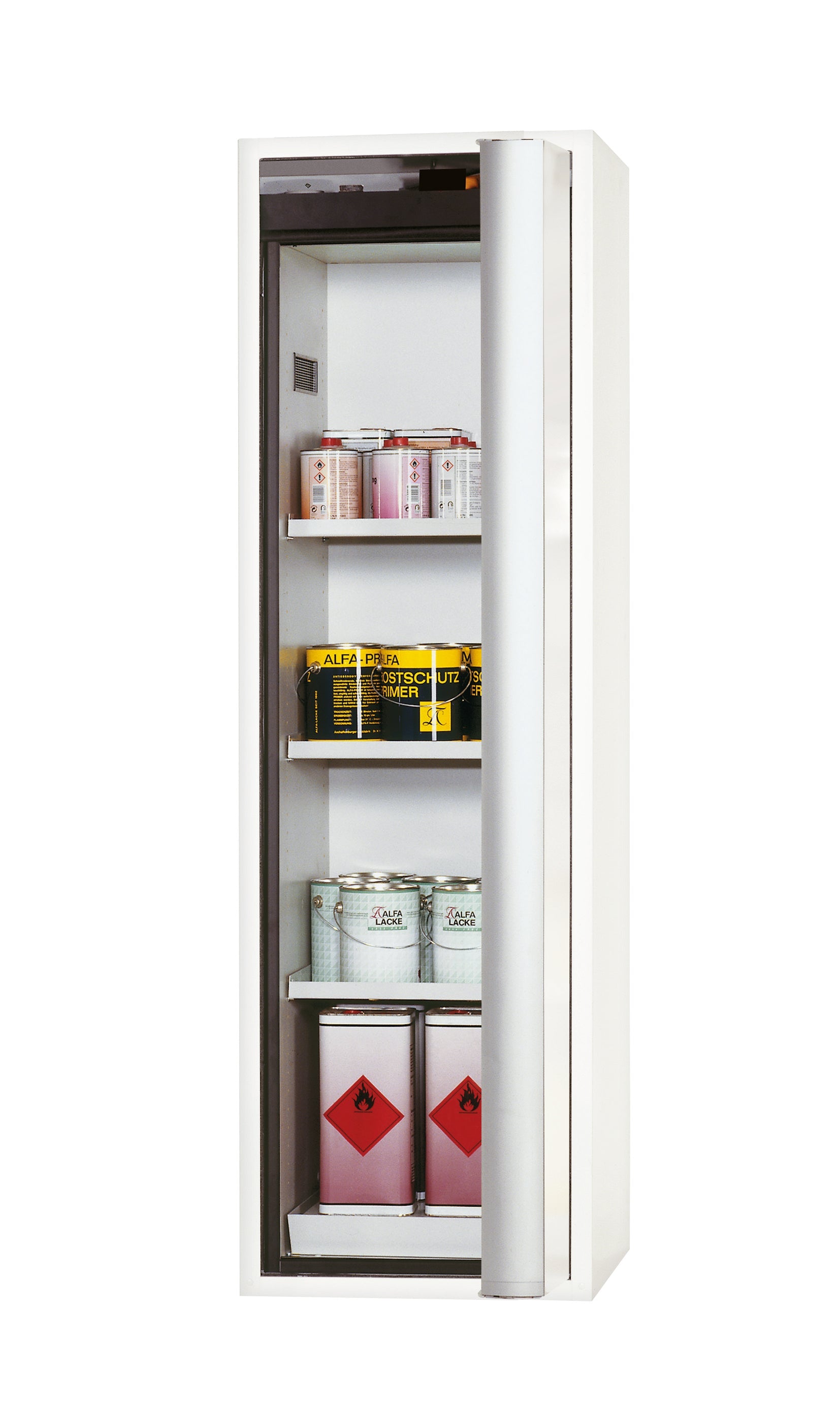 Typ 90 Sicherheitsschrank S-PHOENIX-90 Modell S90.196.060.FDASR in laborweiss (ähnl. RAL 9016) mit 3x Fachboden Standard (Stahlblech)